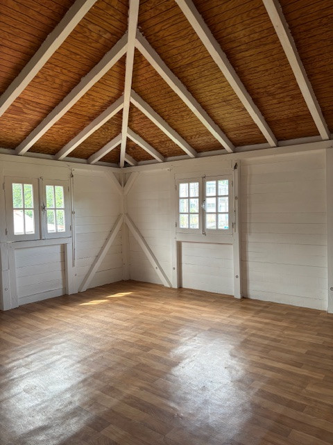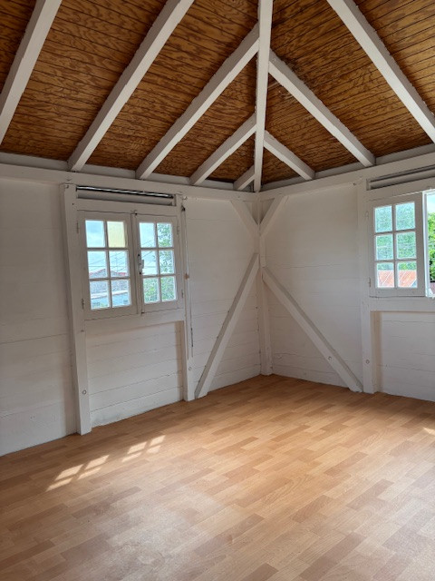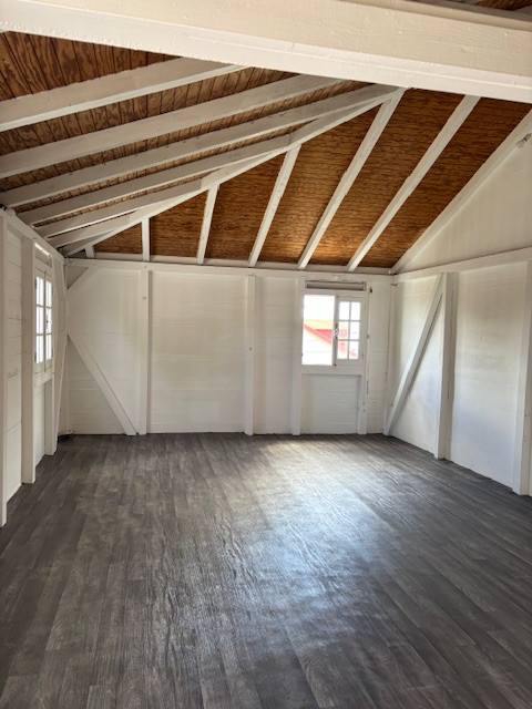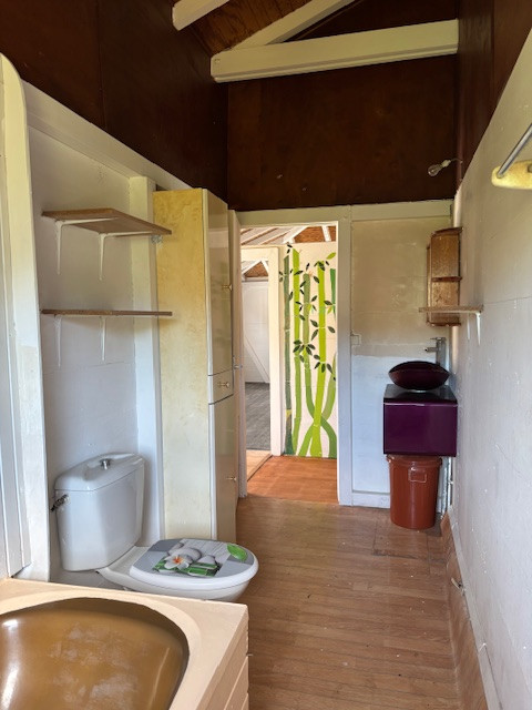 Haut de Villa en bois 4P avec grande terrasse vue mer et montagne comprenant une cuisine séparée, un séjour, 3 chambres et une salle de bains avec WC