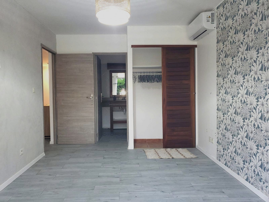 Il comprend :1 coursive privative, 1 entrée , 1 cuisine moderne et fonctionnelle ouverte sur 1 grand espace de vie lumineux climatisé , 2 chambres climatisées dont 1 parentale avec sa salle d'eau , 1 salle de bain avec wc et placard intégré, 1 wc indépendant, 1 varangue de 16 m² équipée de volets roulants qui assure une luminosité optimale avec la jouissance privative d'une partie commune: le jardinet . Citerne à disposition pour palier aux éventuelles coupures d'eau .