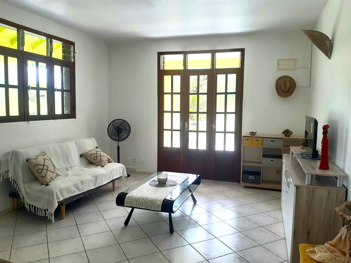Joli bas de villa 3P meublé avec de beaux volumes, lumineux, ventilé ,quartier Marieulle, sur un terrain avec arbres fruitiers (Avocatier, bananiers, pommes malaka etc...) équipé d'un portail électrique